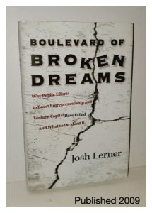 The REAP program is based in large part on research done by Josh Lerner, a Harvard Professor, who published a book in 2009 titled the Boulevard of Broken Dreams, which was published in 2009. Scott Stern calls this a “MUST READ BOOK.”