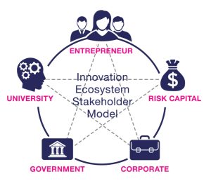 在麻省理工學院 REAP 的創新生態系統利害關係人模型中,有五個主要的利害關係人。這五者都很重要,缺少其中任何一方,生態系統就難成功。